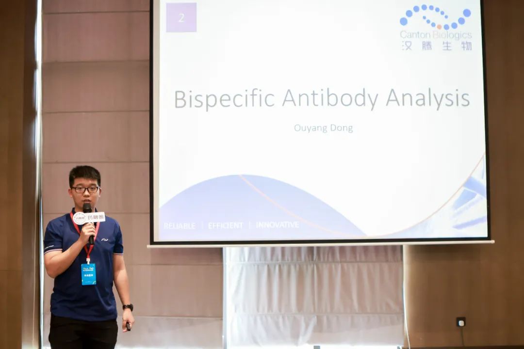 漢騰生物理化分析經理歐陽東受邀出席交流會并在會上做了“雙抗的質量分析”的主題報告。在論壇會上與各位同仁討論了雙抗行業(yè)發(fā)展現(xiàn)狀以及開發(fā)中相關技術問題和解決方案?;诓煌p抗的結構特點,工藝開發(fā)中可能會存在不同的風險。比如,非對稱雙特異性抗體、對稱雙特異性抗體分別會出現(xiàn)錯誤配對及碎片和聚集的問題。在分析檢測過程中,可以根據結構特點制定不同的分析策略來監(jiān)測關鍵質量屬性(CQAs),為工藝開發(fā)提供進一步的指導。