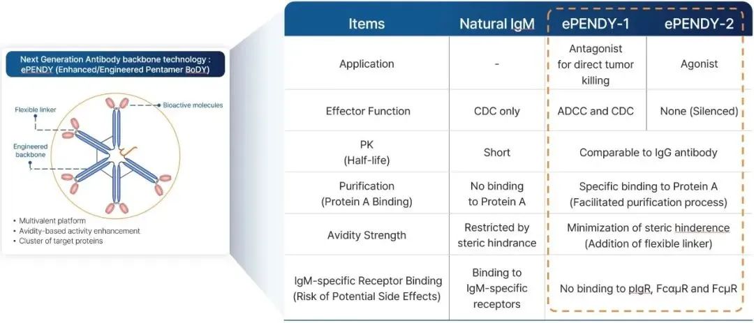 IMBiologics作為韓國(guó)唯一的IgM抗體研發(fā)公司,開(kāi)發(fā)了下一代的IgM分子構(gòu)型(已獲專利授權(quán)):ePENDY®平臺(tái)