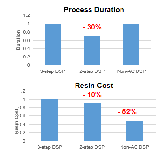 三步法、二步法和非親和層析的過程持續(xù)時間與填料費用對比